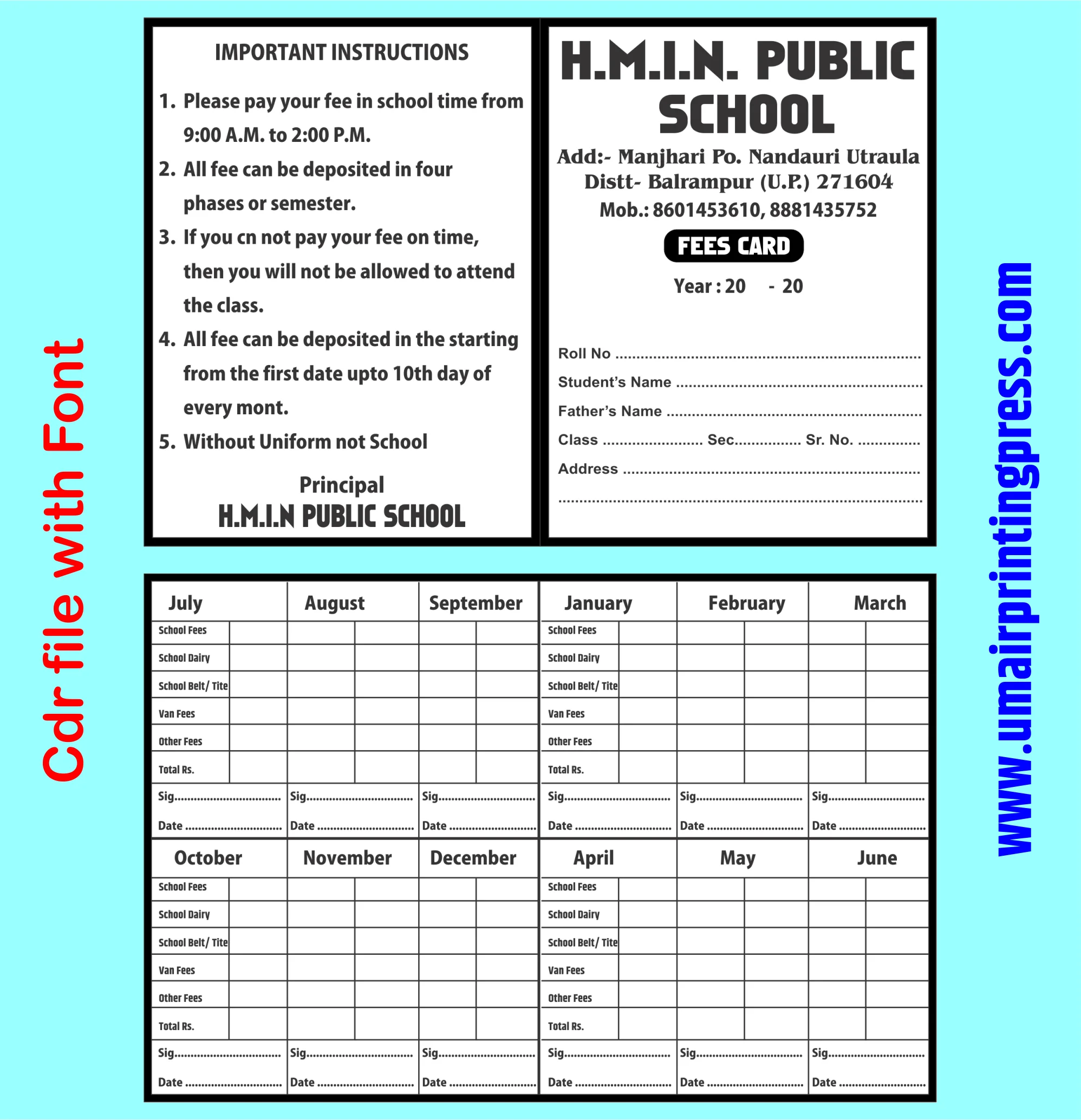 A school fee card is more than just a receipt – it’s a representation of your institution’s identity. A well-designed fee card can:
